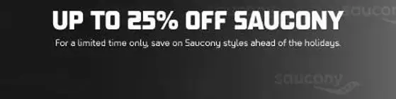 Limited time only! Shop in store and get up to 25% off Saucony.