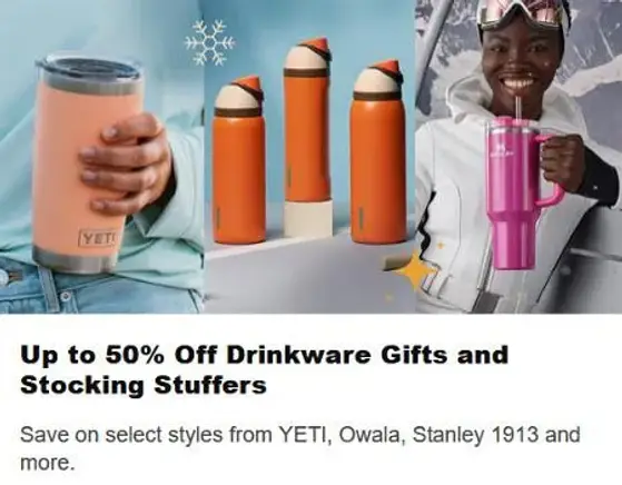 Hurry, limited time only! Shop in store and get up to 50% off select drinkware gifts and stocking stuffers from YETI, Owala, Stanley 1913 and more.